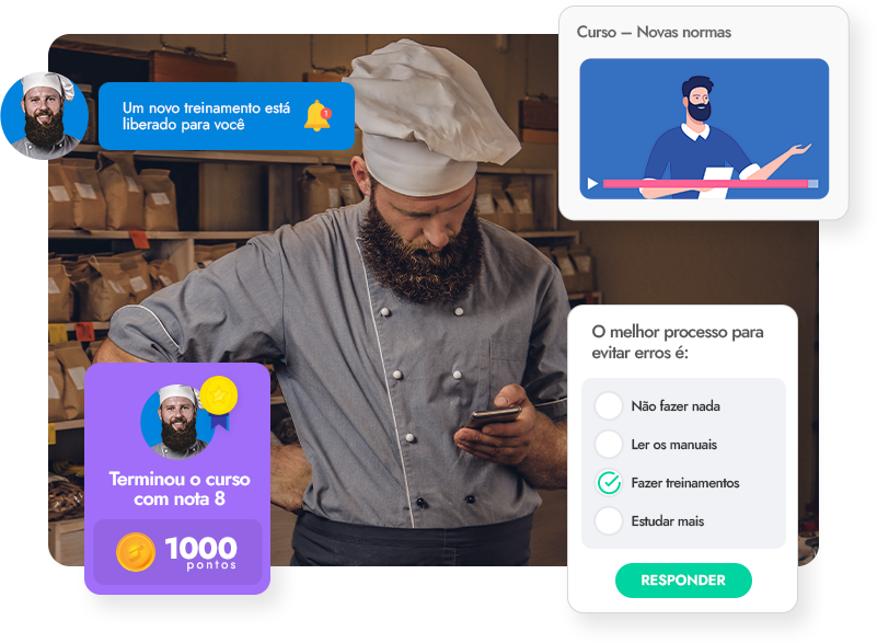 Distribua treinamentos customizados para seus colaboradores operacionais, onde eles estiverem, utilizando micro learning ou cursos tradicionais.